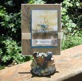 I did another direct to paper card for my challenge card. I swiped So Saffron across the top and Baked Brown Sugar across the bottom. I inked up the grass using the bird image from the set, Simply Sketched, using a Island Indigo marker. The bird was watercolored in using a blender pen and Island Indigo and So Saffron ink. Here's the rest of the details: